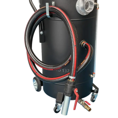 Der 130-Liter-Behälter aus lackiertem Stahl, optional auch in Edelstahl AISI 304 erhältlich, bietet ausreichend Volumen für große Mengen. Die integrierte Entleerungspumpe sorgt für eine schnelle und effiziente Flüssigkeitsentsorgung. Ein externes Füllstandsanzeigegerät zeigt den Flüssigkeitsstand an, während ein interner Sensor den Saugvorgang bei Erreichen der maximalen Kapazität automatisch stoppt.