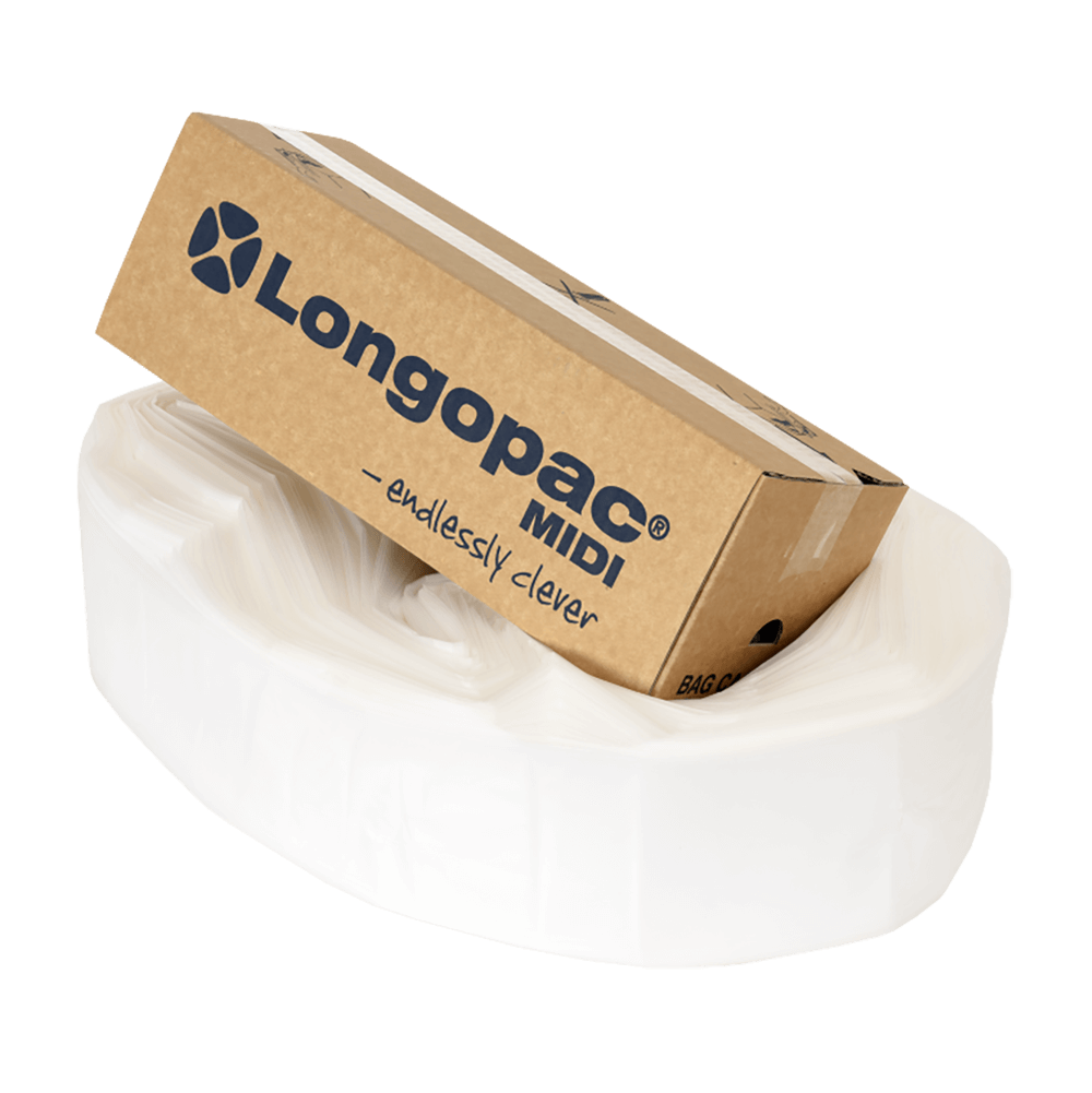 Anstelle mehrerer einzelner Müllbeutel verwendet das Longopac-System eine durchgehende Beutelschlauchrolle – entsprechend 25 bis 30 herkömmlichen Beuteln.