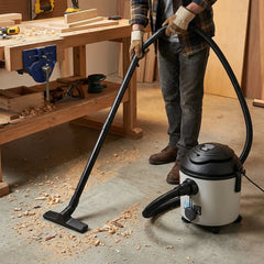 This vacuum boasts a good-sized 15-litre drum, proving immensely durable for years of commercial use to last. It is fitted with a manual filter cleaning button alongside a hard-working HEPA filter. The vacuum itself comes with non-marking wheels that are, again, built to endure.
