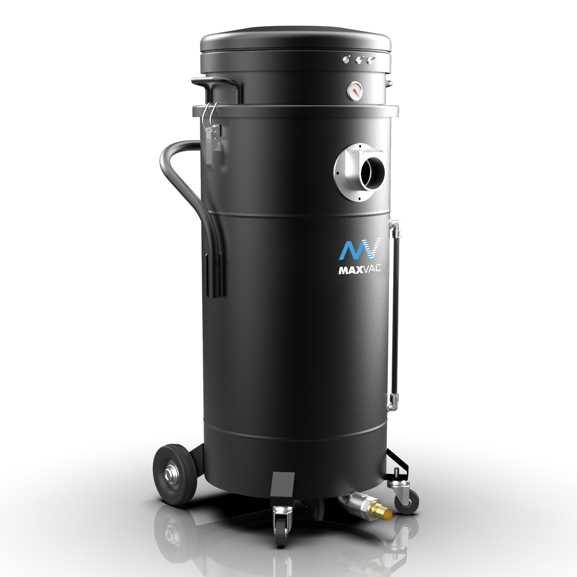 Powered by three high-performance by-pass motors, the SV1-470-LBW generates an impressive maximum vacuum of 250 mBar and an air flow of 570 m³/h. This powerful suction ensures liquids are collected rapidly and efficiently, minimizing downtime. The material enters through a robust metal inlet, where a die-cast aluminum alloy and cast iron deflector directs debris to the bottom of the container. This innovative design protects the filter and extends its service life.
