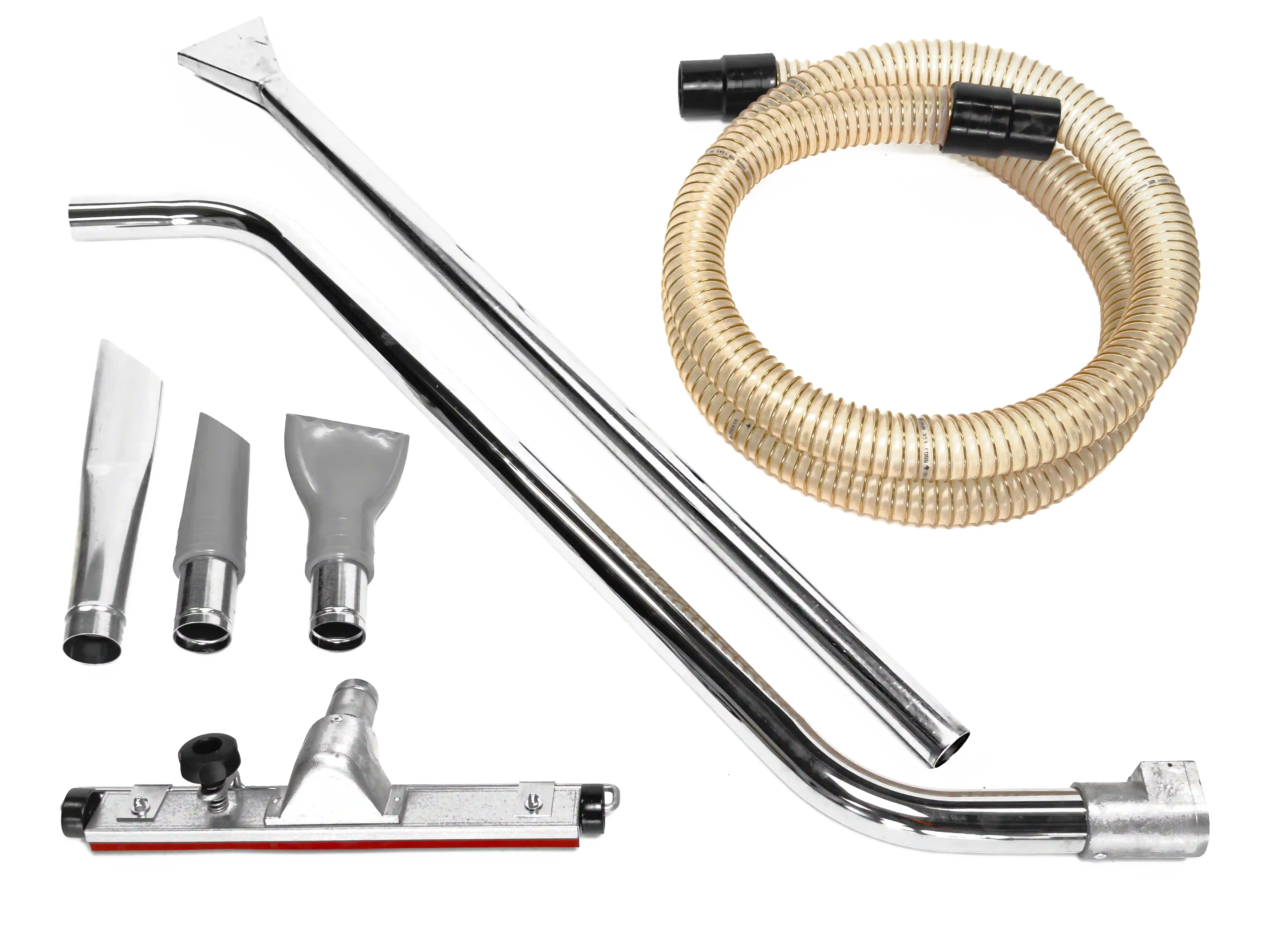 Kit containing specific accessories for 40 mm diameter oil and swarf vacuuming application. 1x 3m Reinforced PUR hose2x Antistatic rubber hose cuff1x Flat pipe2x metal connections1x Oil-proof conical nozzle1x Oil-proof sweeper nozzle1x Scraping nozzle1x Double bend for floor cleaning1x Floor squeegee Read more